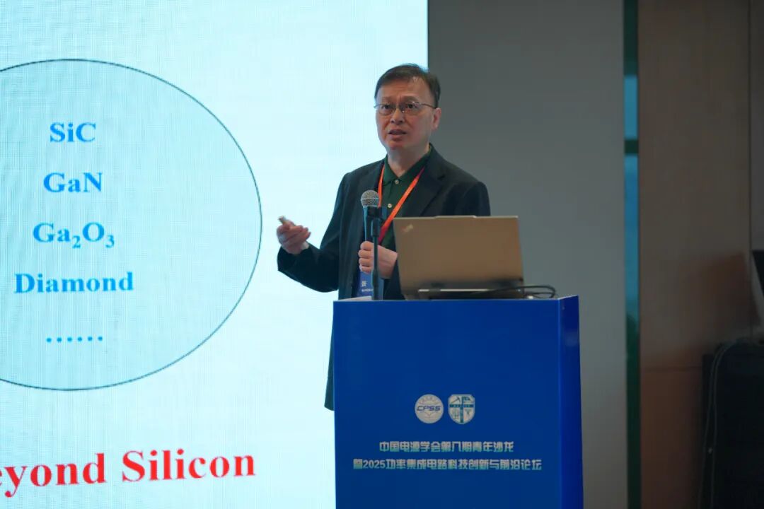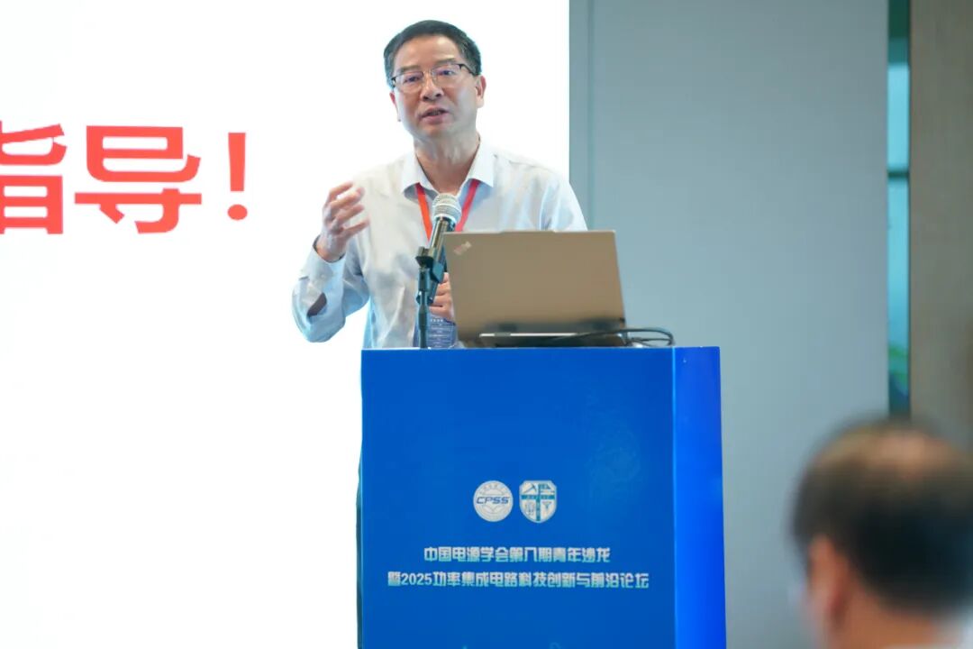 刘国友教授、许建平教授依次主持了第一场大会特邀报告环节。电子科技大学张波教授首先作题为《功率半导体与集成技术》的报告。他从“More Silicon”与“Beyond Silicon”不同技术路径出发,深入剖析了功率半导体技术在突破传统“硅极限”、碳化硅与氮化镓等宽禁带材料器件,以及向“More than Device”的系统级芯片集成演进过程中面临的核心挑战与解决方案,为产业在新形势下的协同创新发展提供了重要思路。