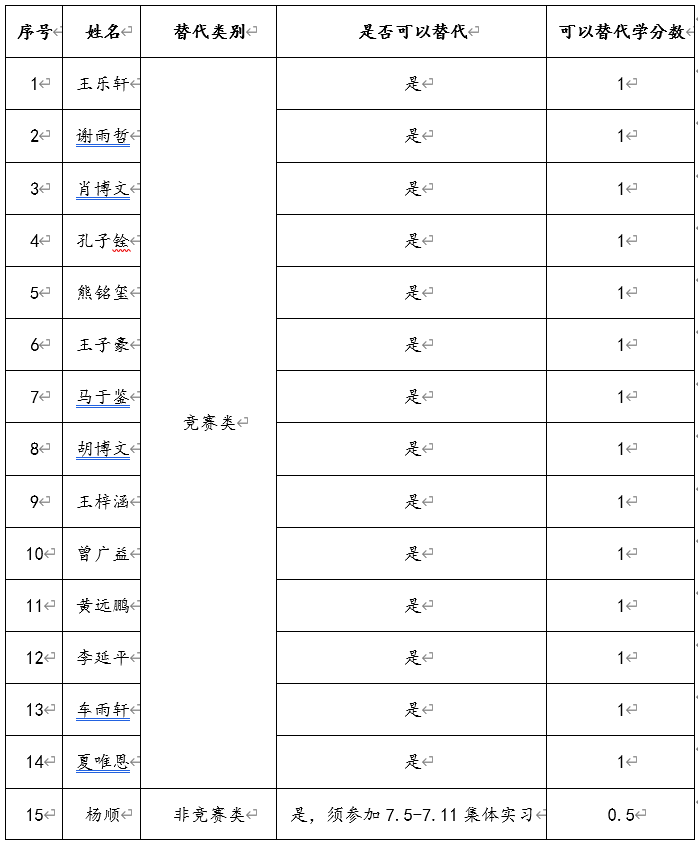 关于加强2025年暑期实习工作的通知》,经个人申请、学院工作小组审核、党政联席会审定,现将学院2025年暑期实习替代申请结果公示如下: